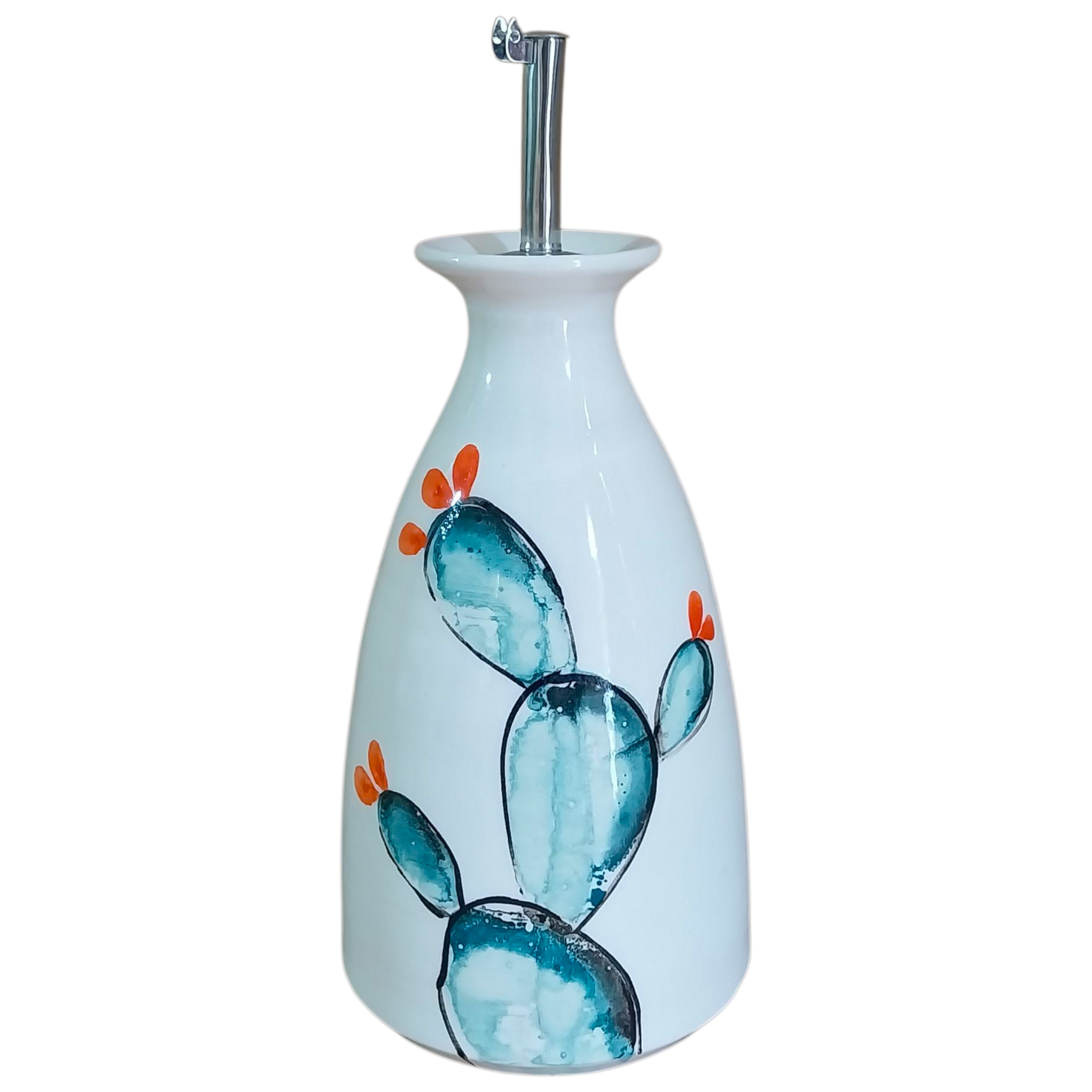 , lo que facilita su limpieza y conservación. ✔️ Capacidad: 500 ml aprox. ✔️ Material: cerámica artesanal ✔️ Diseño: cactus pintado a mano ✔️ Apta para lavavajillas ✔️ Ideal para aceite, vinagre o decoración