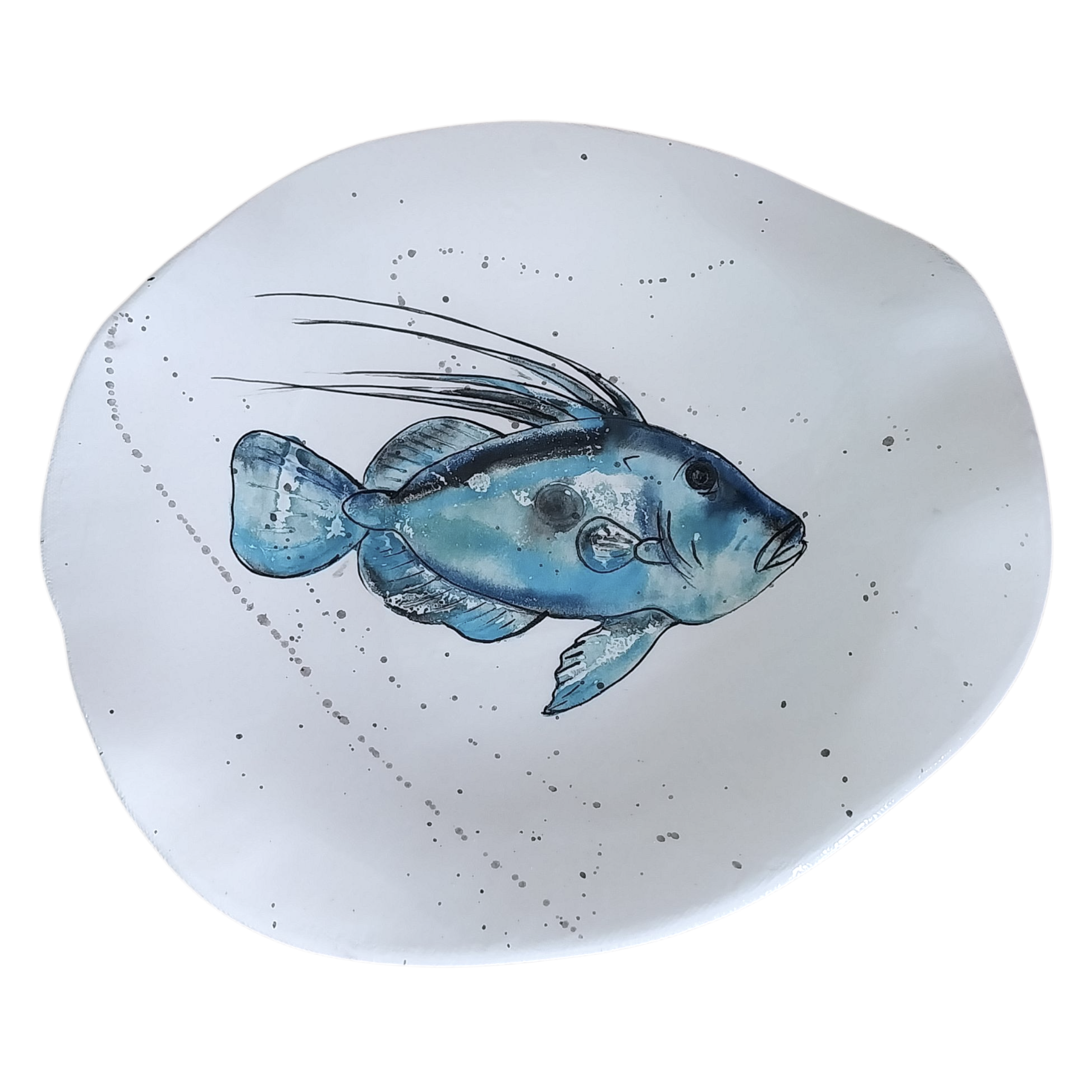 Decora tu espacio con este encantador plato irregular de cerámica blanca hecho a mano. Nuestro equipo en ABCO Pottery Studio, ubicado en Mallorca, se ha inspirado en el entorno mediterráneo para crear esta pieza única. Presenta un delicado dibujo de un pez gallo de San Pedro en colores suaves como el rojo, naranja y verde mar, pintado meticulosamente a mano por nuestros expertos artistas en Pollensa. Agrega un toque de autenticidad y elegancia a tu hogar con este plato artesanal que refleja la belleza de la cerámica hecha a mano."