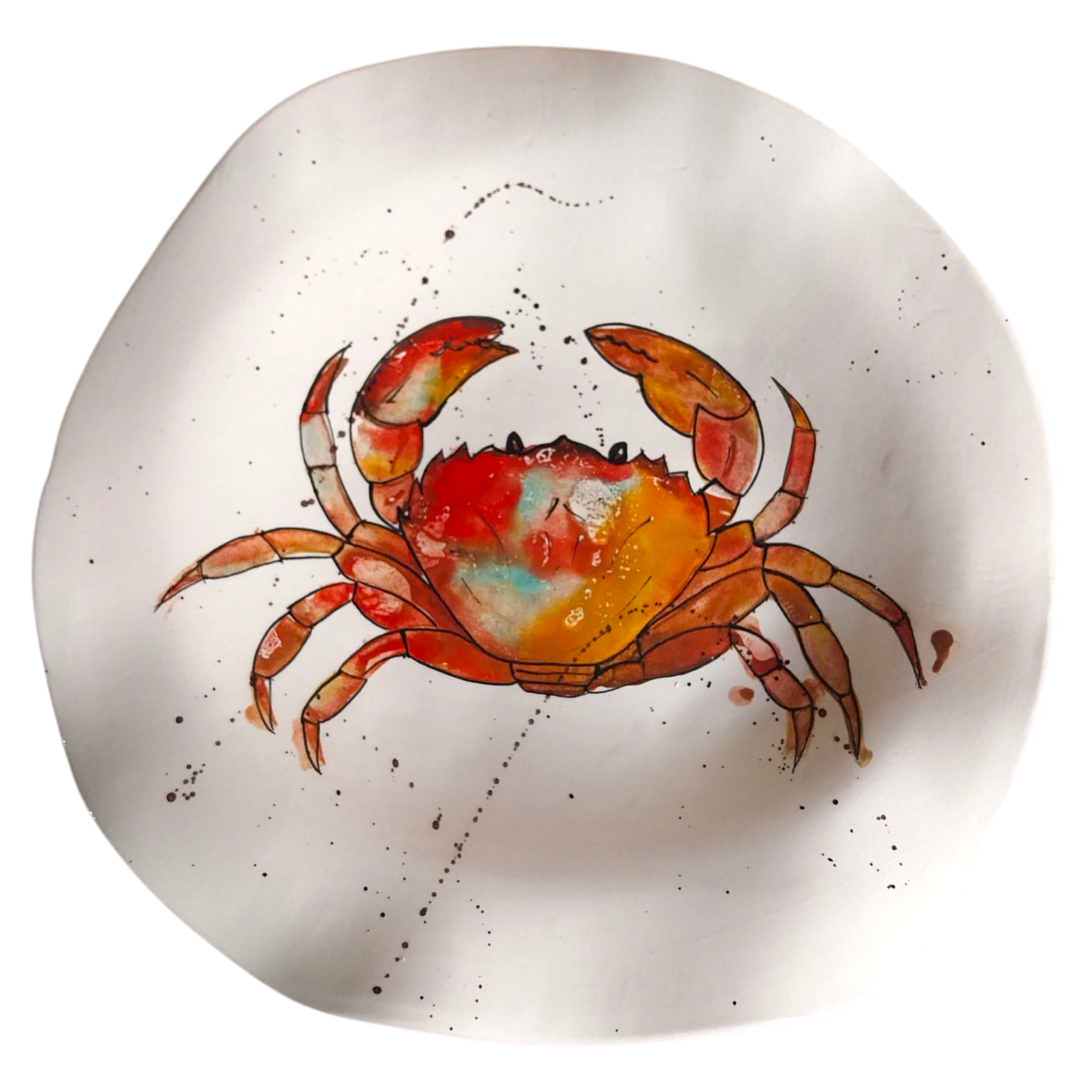 Descubre la artesanía excepcional del plato de cerámica blanca irregular, elaborado a mano en Pollença, Mallorca. Con un diámetro de unos 35 cm, cada pieza es única y puede presentar ligeras variaciones debido a su proceso artesanal. Inspirado en la belleza del Mediterráneo y la cultura mallorquina, este plato presenta un impresionante cangrejo a elegir entre dos colores: tonos rojos, naranjas y verdes o tonos azules y verdes, meticulosamente elaborado por nuestros artesanos expertos. Cada plato es una obra maestra confeccionada con cerámica de alta calidad, garantizando durabilidad y resistencia. Perfecto para embellecer cualquier espacio, este plato es un complemento ideal para tu hogar, ya sea en la mesa o como pieza decorativa en la pared..