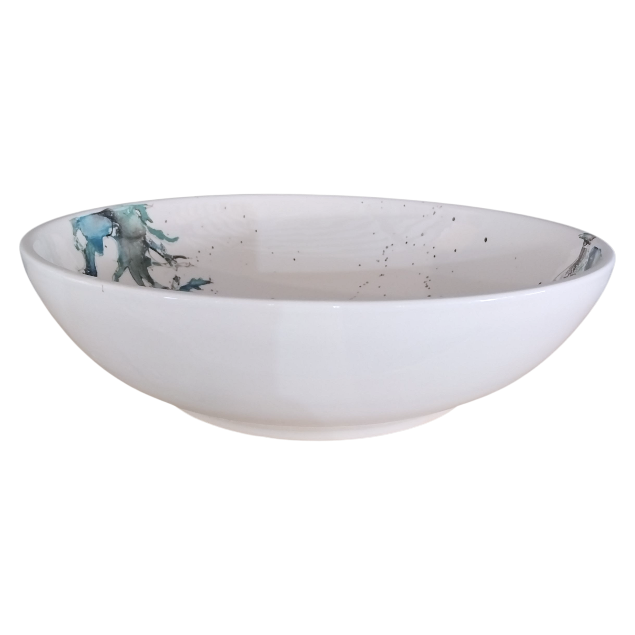 Ensaladera Extra de cerámica con un diseño artístico de tres caballitos de mar en diferentes tonos de azul. El motivo marino aporta frescura y elegancia a cualquier mesa. Su acabado esmaltado resalta los detalles del dibujo y facilita la limpieza. Fabricada en cerámica resistente, es apta para lavavajillas. Ideal para servir ensaladas, frutas o platos fríos, tanto en el hogar como en hostelería.