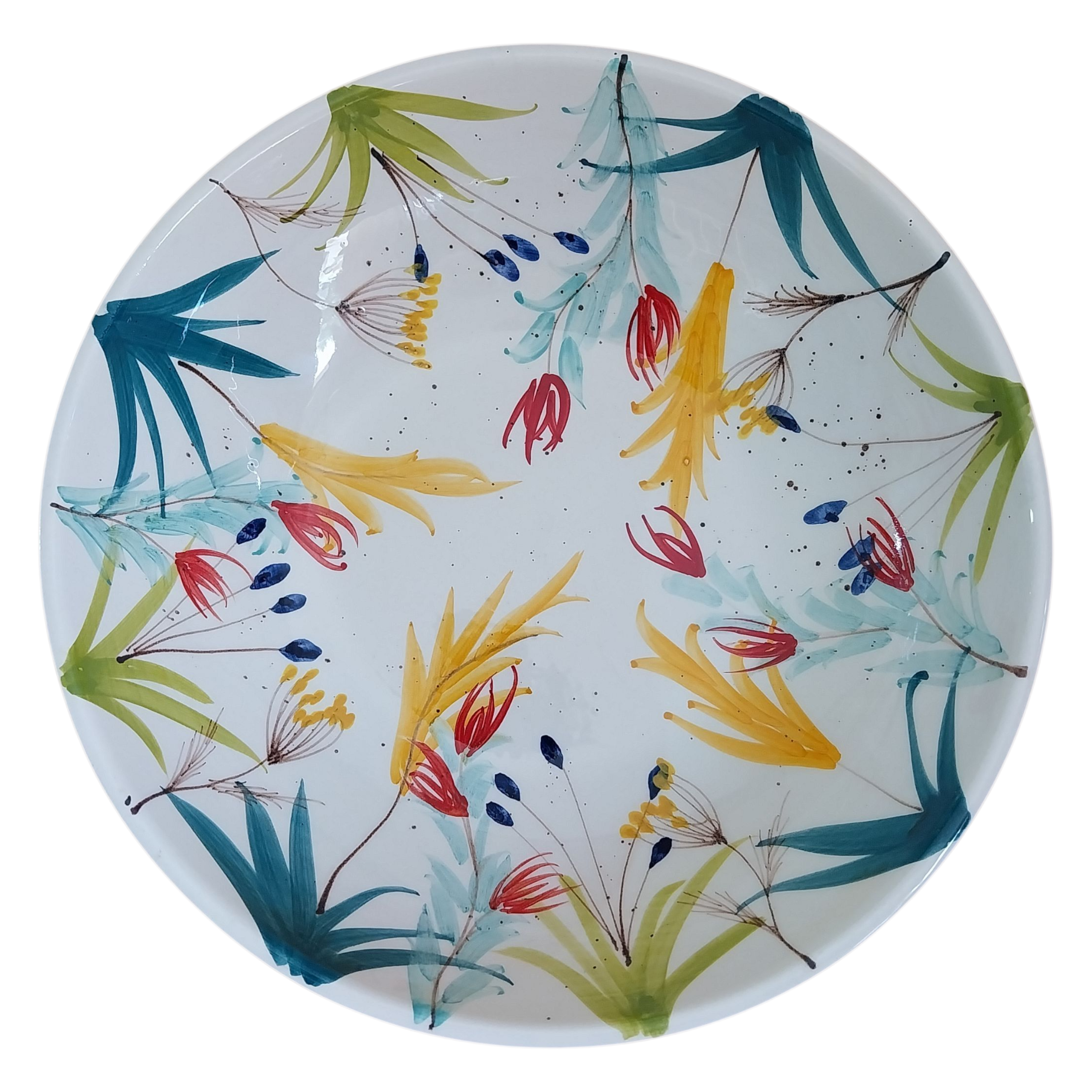 combina funcionalidad y estilo en una pieza única de cerámica. Su interior está decorado con un alegre patrón floral en tonos verdes, amarillos, azules y rojos que aportan frescura y color a cualquier mesa. Su acabado brillante y bordes suaves la hacen perfecta tanto para el uso diario como para ocasiones especiales. Gracias a su fabricación en cerámica resistente, esta ensaladera es